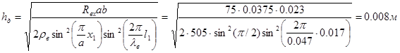 rв =120plв /l=120p×0.067/0.05=505 Ом- волновое сопротивление волновода;