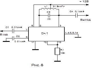 Оба УРЧ (рис.8) выполним на микросхеме К174ПС1, которая представляет собой двойной балансный смеситель для частот до 200 МГц и предназначена для преобразования частот УКВ-диапазона в радиоприемной и связной аппаратуре.