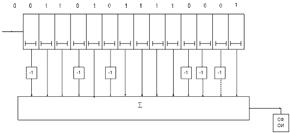 М-последовательность для передачи синхросигнала: 100010011010111.