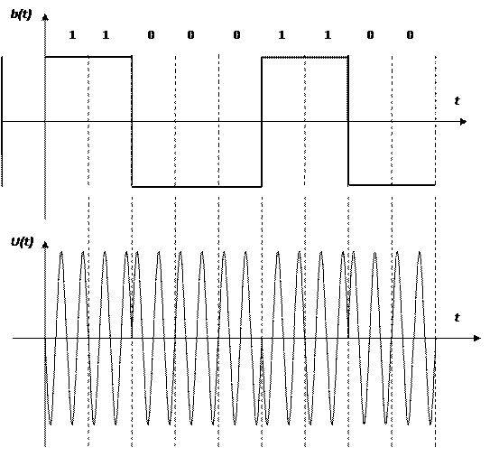 2. Изобразить временные диаграммы модулирующего b( t) и модулированного U( t) сигналов, соответствующие передачи j -го уровня сообщения a( t).