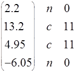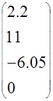 V(0)=2.2*(-0.164)=-0.361 V(T)=11*(-0.164)+2.2*0.82=0 V(2T)=(-0.6.05)* (-0.164)=11*0.82+2.2*0.451=11.004 V(3T)=0*(-0.164)+ (-6.05)*0.82+11*0.451 |