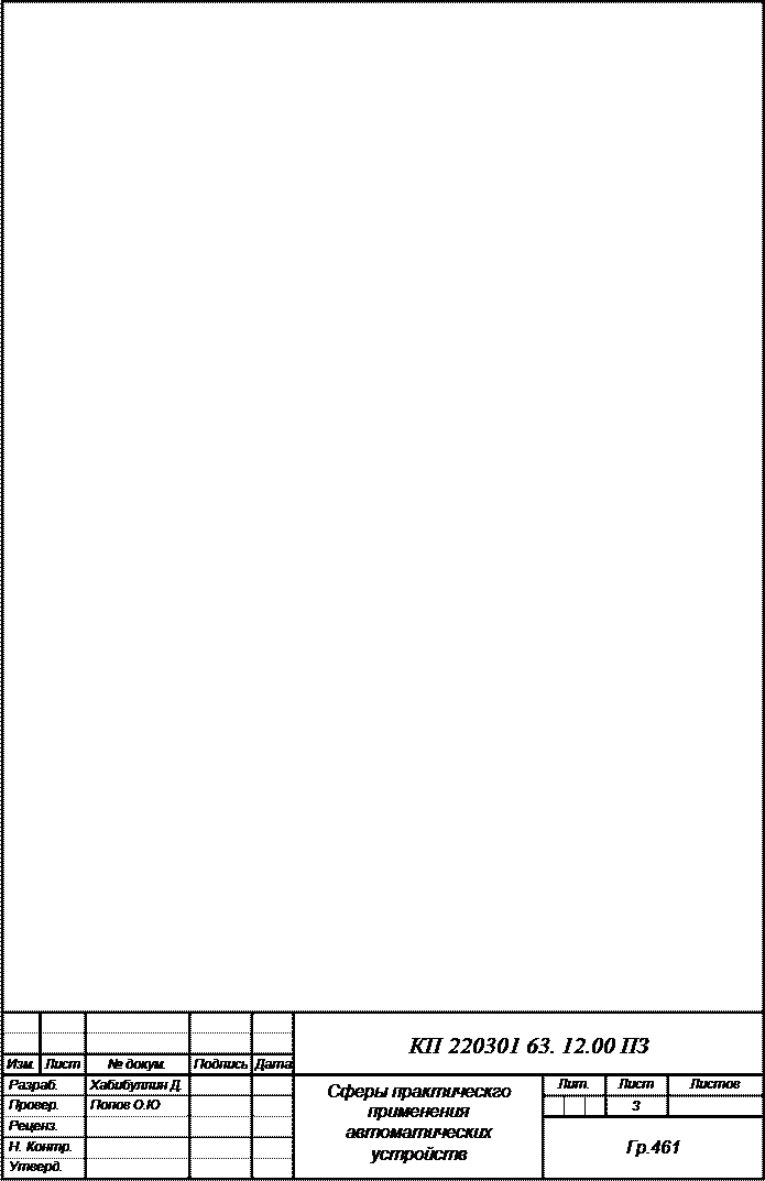 В данном курсовом проекте мною были изучены сферы практического применения автоматического устройства, а именно автоматической системы спринклерой установки, применение которой рассмотрено в электросиловом цехе.
