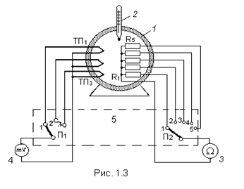 2) определение зависимости величины электродвижущей силы термопар от температуры;