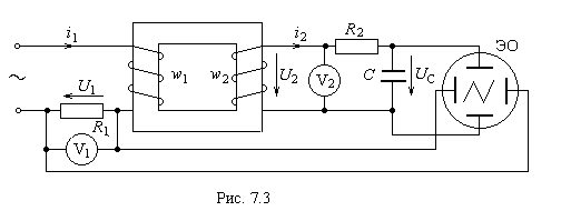 Для измерения напряжений на резисторе R 1 и на вторичной обмотке w 2 применены цифровые вольтметры с большим входным сопротивлением.