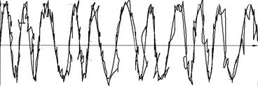 . В каналі діють завади у вигляді білого гауссівського шуму. В результаті виникає спотворення сигналу (рис. 2д). Демодулятор призначений для виділення інформаційного сигналу з коливання. Сигнал відновлюється з деякою похибкою (рис. 2в). Декодер коду що коректує, здійснює виправлення або виявлення помилок, перетворює кодову комбінацію у комбінацію простого коду (рис. 2б). Декодер простого коду перетворює кодову комбінацію у відліку інформаційного сигналу (рис. 2а). Одержувач отримує передану інформацію.