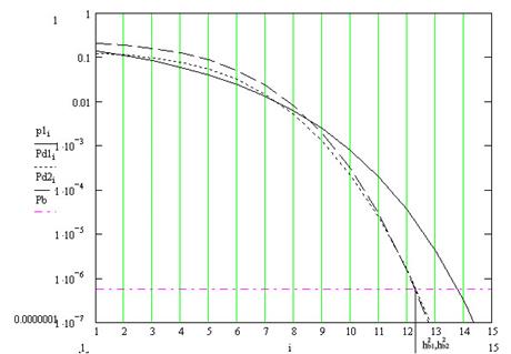 | Pпд | 0,81 | 0,549 | 0,219 | 0,034 | 1,28Е10-3 | 6,451E-06 | 1,844E-09 | 7,05E-15 |