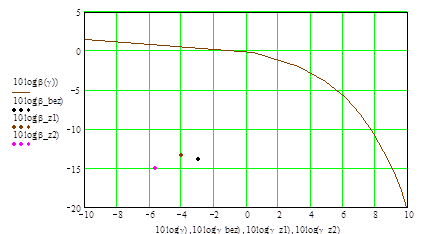 Розраховуємо і будуємо графік граничної залежності b = f (g) – межа Шеннона. Значення b і g відкладають у логарифмічних одиницях – відповідно 10lgb і 10lgg.