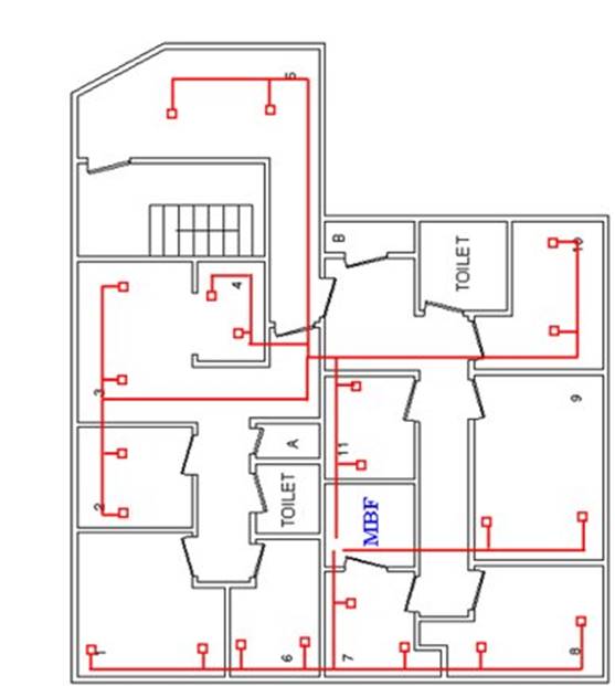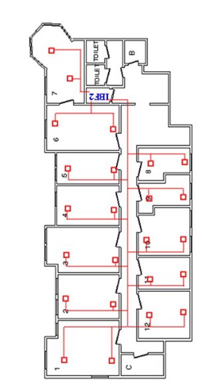Рис. 2. Горизонтальная проводка. Здание №1 (восточный корпус)
