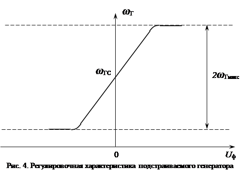 На рис. 4 приведена регулировочная характеристика подстраиваемого генератора. При малых величинах напряжения UФ регулировочная характеристика линейна и описывается выражением