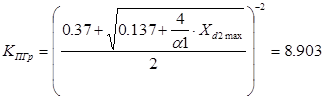 При подборе коэффициента передачи по третьему условию необходимо учитывать зависимость от него максимального значения ошибки слежения в переходном режиме, но для получения этой зависимости параметры системы должны быть известными, т.е. ее разработка в линейном приближении завершена, в том числе выполнен синтез цепей коррекции. Следовательно, должна быть завершена работа, требующая знания петлевого усиления. Поэтому здесь используется приближенная формула: