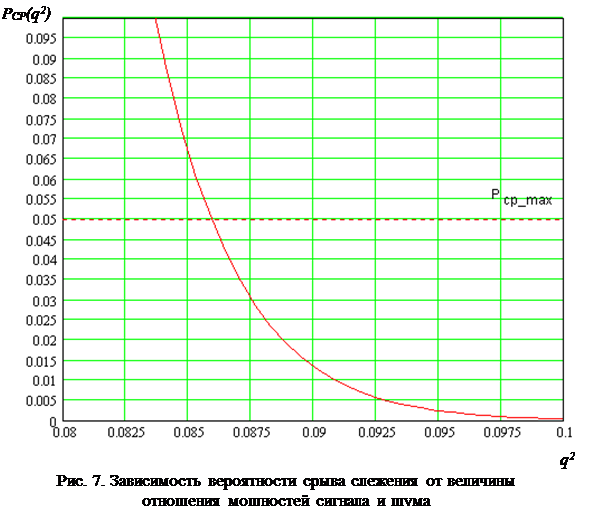 В связи с тем, что зависимость вероятности срыва слежения от отношения q2 мощностей сигнала и помехи имеет сложный характер, непосредственное вычисление q2 мин , соответствующего заданному значению Pср , возможно применением численных методов решения алгебраических уравнений высокого порядка. В данной работе такое уравнение решается графическим методом.