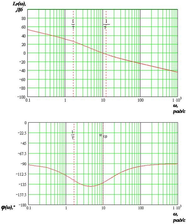 Логарифмическая амплитудно-частотная характеристика и фазо-частотная характеристики системы с корректирующим звеном представлены в прил. 2.