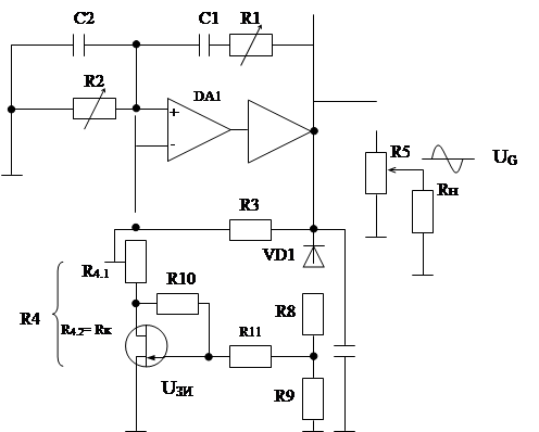 Таким образом задана следующая схема генератора синусоидальных колебаний на ОУ – рис. 1.