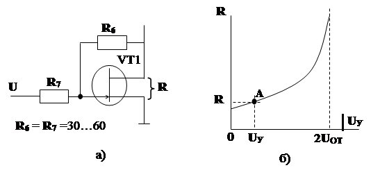 Рис.2. Включение полевого транзистора в качестве нелинейного сопротивления: