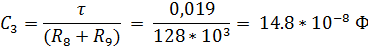 Емкость конденсатора С3 рассчитывают, задавшись постоянной времени