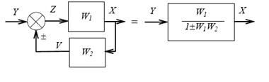 отсюда получаем выражение для передаточной функции соединения обратной связью: