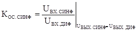 Коэффициент ослабления синфазного сигнала КОС СИНФ определяется как отношение напряжения синфазного сигнала, поданного на оба входа, к дифференциальному входному напряжению, которое обеспечивает на выходе тот же сигнал, что и в случае синфазного напряжения:
