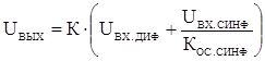 С учетом (1.5) напряжение на выходе ОУ, появляющееся при одновременной подаче дифференциального и синфазного входных сигналов, равно
