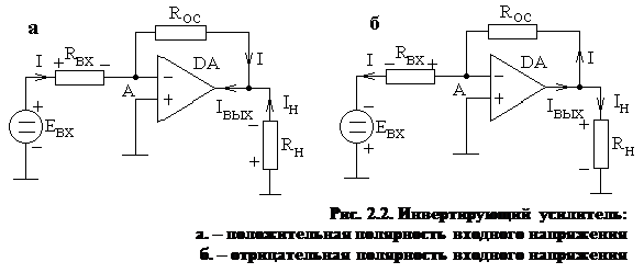 (напряжение на входе (+) отрицательно по отношению к напряжению на входе (–)), выходное напряжение отрицательно, рис. 1.7,б.