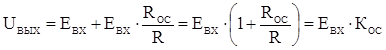 Учитывая, что выходное напряжение складывается из падений напряжений на резисторе RОС и R можно записать: