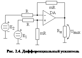 Выходное напряжение дифференциального усилителя пропорционально разности напряжений приложенных к инвертирующему и неинвертирующему входам.