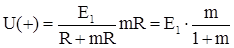 Если закорочен источник Е2 , то напряжение Е1 делится резисторами R и mR. Напряжение на входе (+):