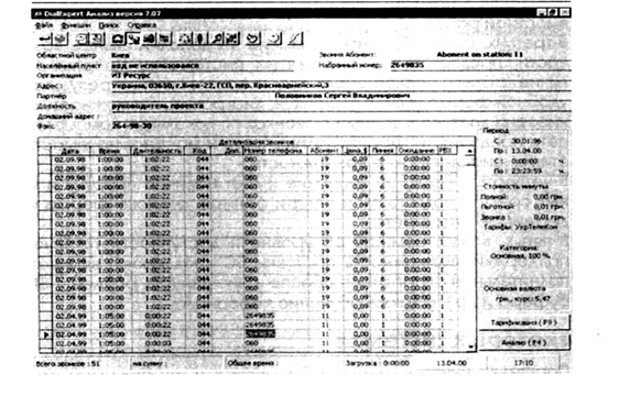 Рис. 2. Учет телефонных переговоров с помощью биллинговой системы DialExpert