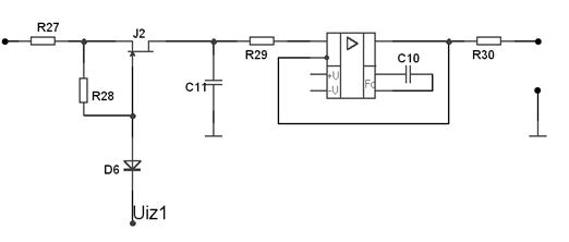 Величины резисторов R27, R30 необходимы для согласования входных и выходных сопротивлений. R27 выбирается равным сопротивлению выхода ФНЧ. R30 рассчитывается по формуле (3.3).