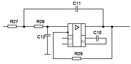 Рисунок 3.3 – Схема электрическая ФНЧ (фильтр Баттерворта II порядка).