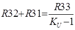 Зная, коэффициент усиления KU и задавшись R33 = 10 kΩ можно рассчитать сумму R32 и R31.