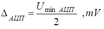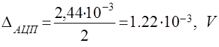 Погрешность АЦП составляет половину величины квантования, она вычисляется по формуле (3.16).