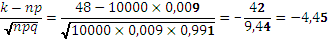 8. Задана вероятность передачи сообщения без искажения p = 0,009. Определить вероятность того, что среди переданных n=10000 сообщений, к=48 окажутся без искажений?