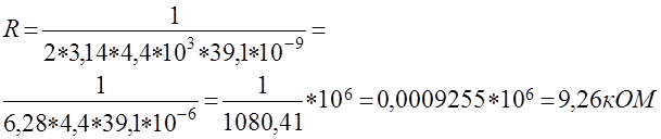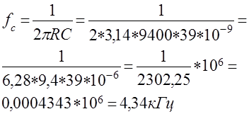 Произведем перерасчет частоты среза фильтра с выбранным значением сопротивления: