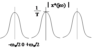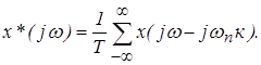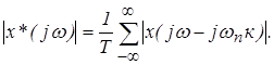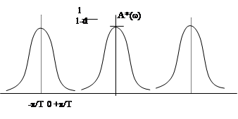 Частотный спектр выходного сигнала состоит из спектра входного сигнала ослабленного в 1/Т раз и спектров дополнительных сигналов сдвинутых по оси частот на величину ±кwп .