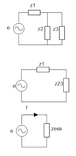 Використовуючи метод еквівалентних перетворень знаходимо загальний опір кола z і струм в нерозгалуженій ділянці кола для кожної гармоніки: