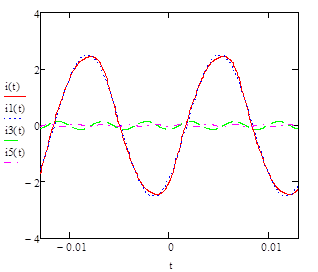 Миттєві значення струму знаходяться, як сума миттєвих значень струмів різних гармонік. Якщо