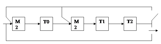 М2 – суматори за модулем 2, Т – комірки пам’яті регістру зсуву