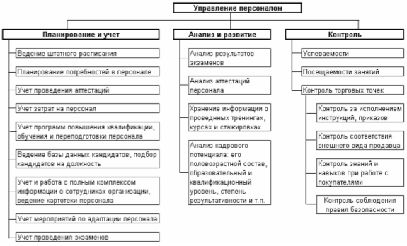 | 1.1 Теоретические основы процесса управления персоналом | - теоретические основы процесса управления персоналом; - анализ рынка программных продуктов; - характеристика деятельности отдела персонала. |