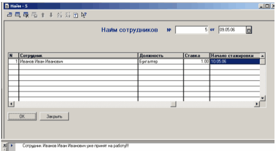 В случае отсутствия контракта работником пишется заявление о найме. Издается приказ о найме. В 5-дневный срок заполняется трудовая книжка, личная карточка Ф. № Т-2, в необходимых случаях на работника заводится личное дело. В российском законодательстве предусмотрен испытательный срок для вновь принятых работников, за исключением некоторых категорий (ст. 21 КЗоТ РФ) с тем, чтобы работодатель мог лучше ознакомиться с возможностями нового сотрудника. Необходимо, однако, отметить, что работник в этот период не может полностью проявить себя, поскольку находится на этапе адаптации.