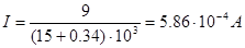 Определим ток в цепи резисторов R9 и R10, для чего подставим в формулу (2) соответствующие данные: