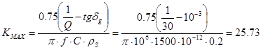 Определим максимальную удельную емкость, обусловленную электрической прочностью межслойного диэлектрика и рабочим напряжением: