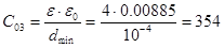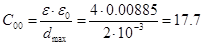 Определим минимальную удельную емкость, приняв значение максимальной толщины диэлектрика: