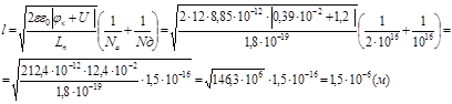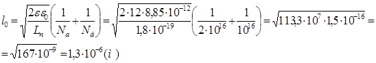 Ширина p-n перехода l0 , м: