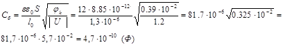 -диэлектрическая постоянная ε0 = 8,85∙10-12 Ф/м