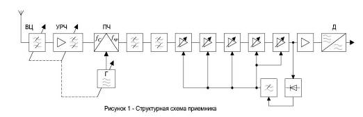 Структурная схема приемника приведена на рисунке 1. Приемник построен по супергетеродинной схеме с одним преобразованием частоты.