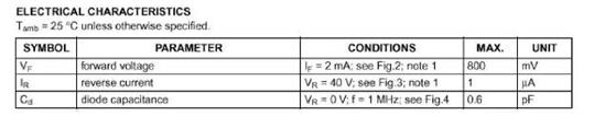 Смеситель построен по балансной схеме. В качестве диодов использую диоды с барьером Шотки 1PS79SB62. Характеристики диода приведены ниже.