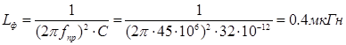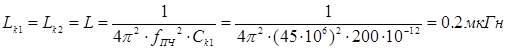 Возьмем их емкость 200 пФ. Индуктивности контуров также равны и вычисляются по формуле: