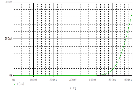 Рис. 6. Зависимость постоянного тока через диод от напряжения на нём.