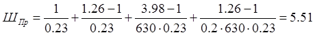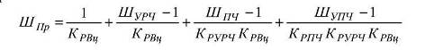 Коэффициент передачи по мощности входной цепи равен КРВц = 0.23. Шумы УРЧ определяются коэффициентом шума микросхемы усилителя ШУРЧ =1дБ =1.26. Шумы преобразователя частоты – это шумы используемых диодов, которые равны Шпч =6дБ = 3.98. Коэффициент шума УПЧ складывается из шумов вносимых только первым каскадом и вычисляется по формуле: