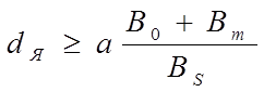 Размер b не должен превышать половину длины волны, иначе появятся паразитные колебания, снижающие КПД. При выборе размеров пакета необходимо, чтобы поперечный резонанс находился, возможно, дальше от основного продольного резонанса. Обычно поперечный резонанс удается сдвинуть, изменив соотношение a/b. Если это сделать не удается, то необходимо увеличить число стержней. При выборе размеров необходимо стремиться к минимальной высоте ярма dЯ . Уменьшение dЯ увеличивает КПД МСП. Однако значительное снижение dЯ может привести к магнитному насыщению ярма. С этой точки зрения высота ярма должна быть больше значения определенного выражением:
